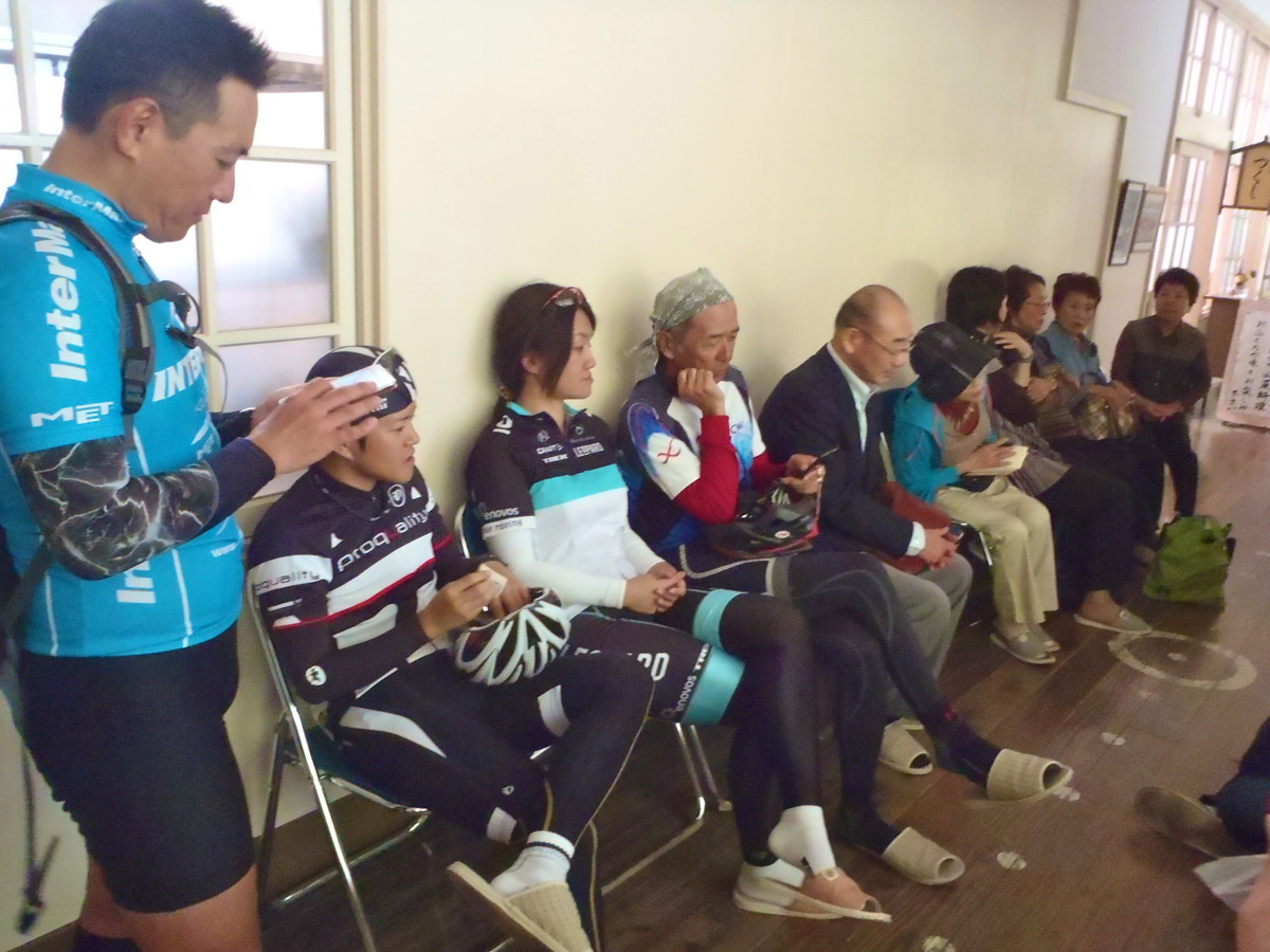 最後の2kmは仁田峠を駐車場に向け逆送します。試走でも走れず、全員が本番で初めて走るコースです。斜度は4%から5%と緩やか。ここで「ペースアップだ」と周りの4台と一緒に踏んで行きます。登りにもかかわらず、ゴール前200mを下ハンでのゴールスプリント。やり切った思いで一杯でした。