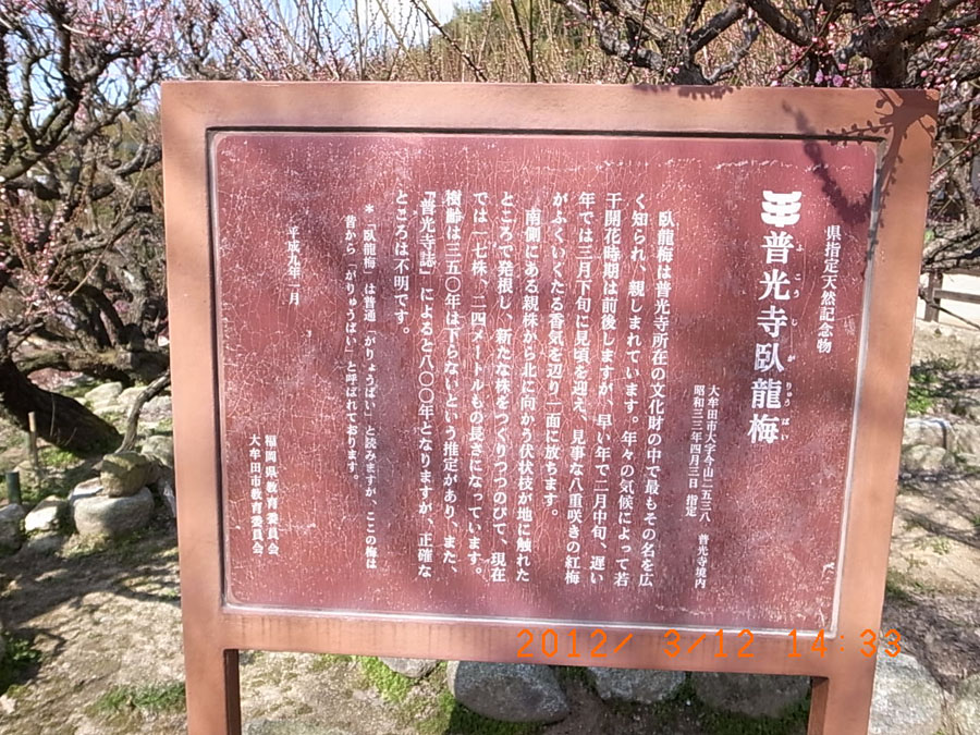 今回の行き先は、大牟田市は普光寺、臥龍梅見物ツアーとなりました。