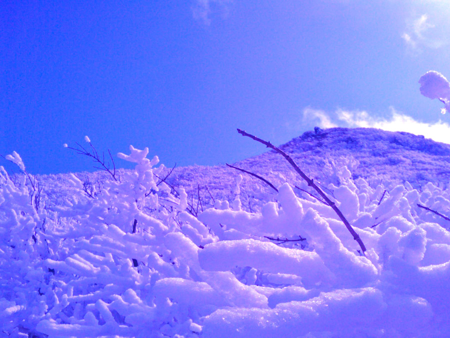 さらに進むと、そこには今まで見たことのない、“樹氷”の森に歓喜の叫びがくじゅうの山々に響きわたりました・・。(大げさ)