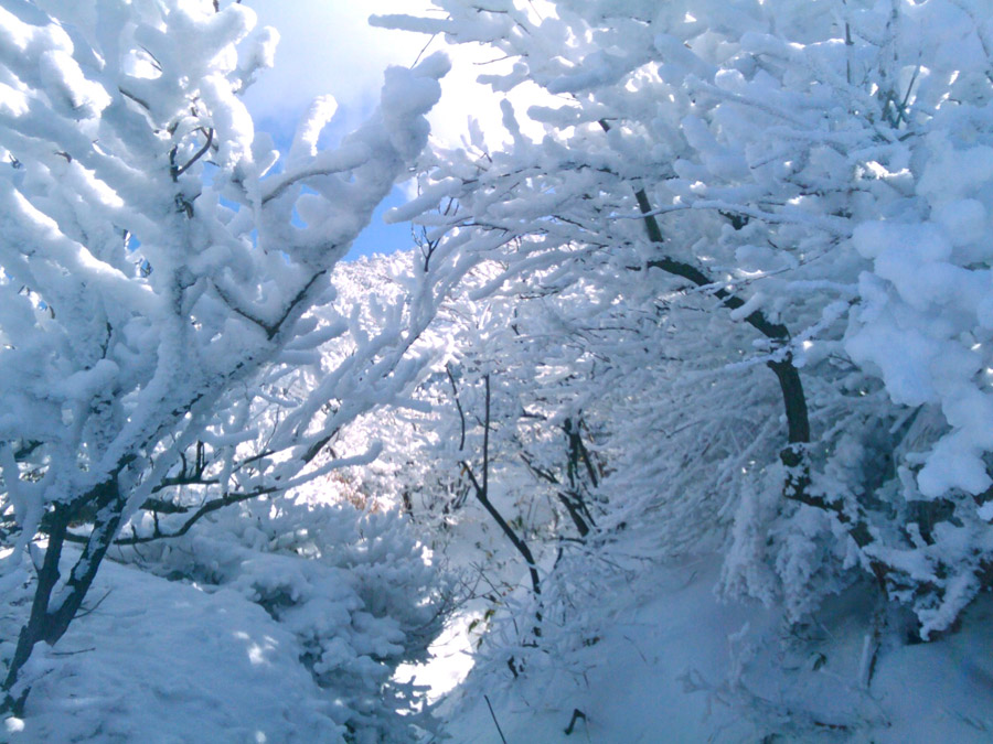 一年前に登ったときは、登山道に入ってすぐから白銀の世界が広がっててとても感動したことを覚えてます。