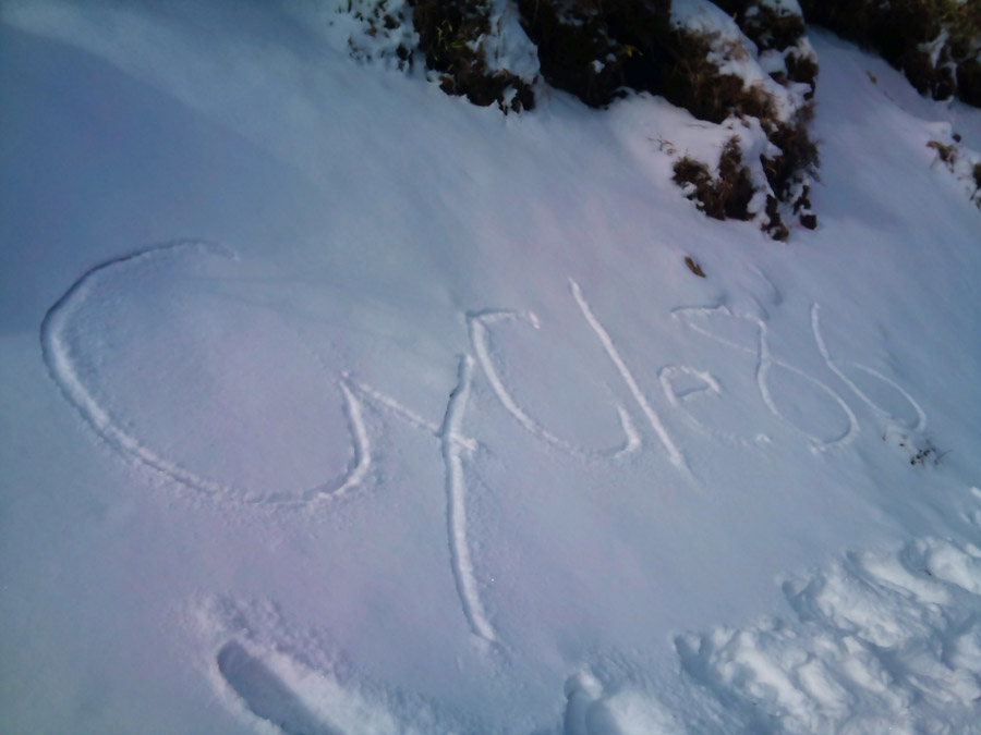 思っていたより雪が少なかったですが、山頂から水無鍾乳洞へ向かうルートはそこそこ雪もあって童心に返れます(笑)。