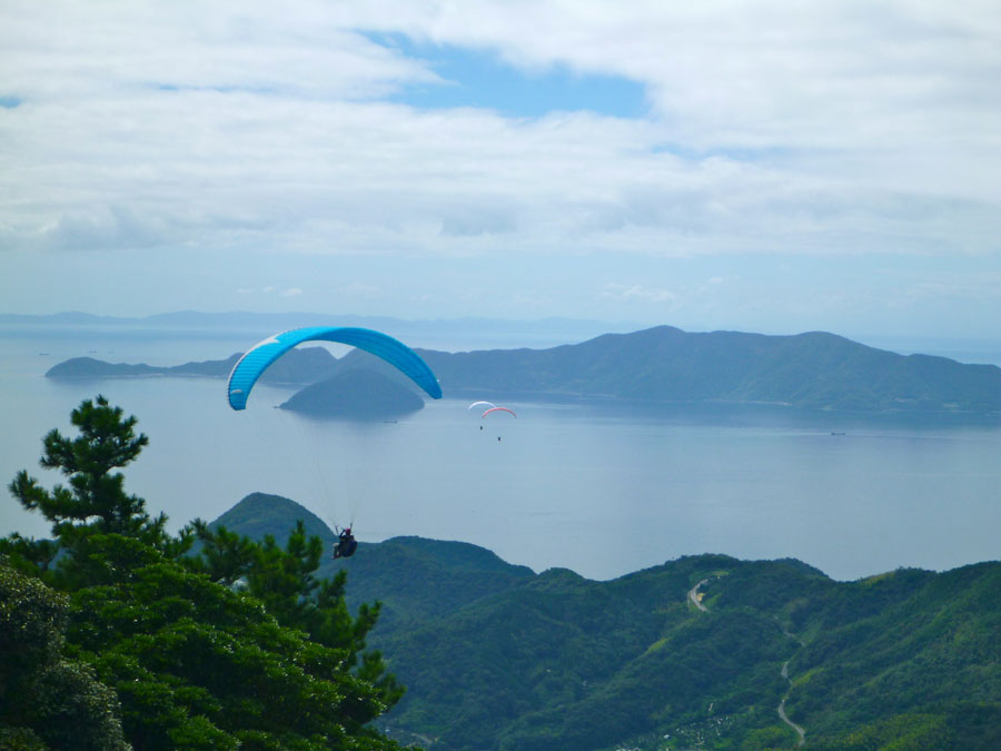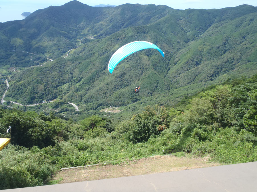 山頂では、パラグライダーが次々に飛立って行きます。見てるととても爽快ですがやってみようなんて全く思いませんがね。景色は思った以上に素晴らしく大満足でした。 それぞれの思いを持って崇山を下ります。