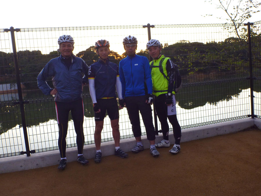 今日秋分の日。好天にも恵まれ久々のロングツーリング、走りまくるぞ〜。参加者は、村稀さん、グレッグおかぽんさん、まっこちさん、それとスマイリーの4人です。朝6時出発、まだ肌寒く、今年初めてレッグウォーマーを着用して糸島方面へ。