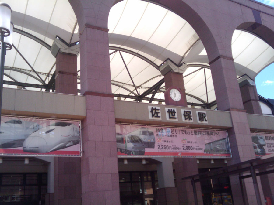 村稀さんおすすめの酒蔵古伊万里を訪問。ここで村稀さん原酒購入、帰りに備えての買い物だそうです。(リュック重たくないですか〜)この店の右手に見えるのが国見岳(標高約500m)、ここを越え佐世保へ行くルートがあるそうですが、かなり高い所を道路が走っています。次回の佐世保ツアーは「あそこを越えるぞー」と3人意気上がります。