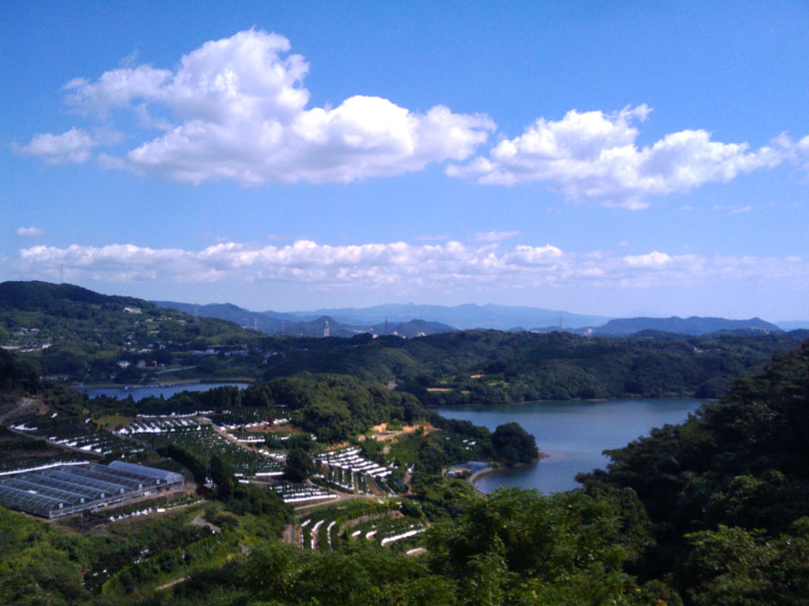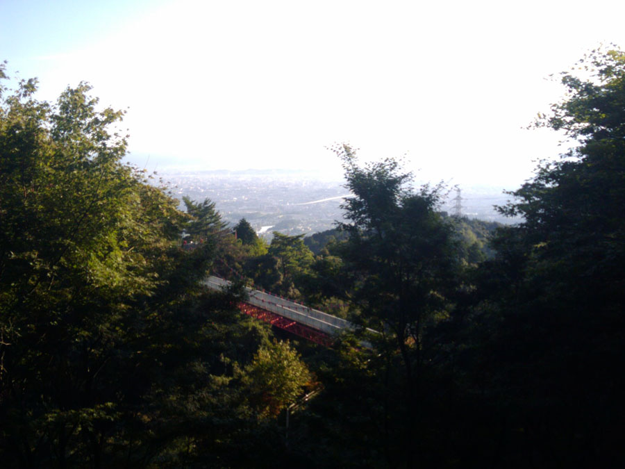 今日は涼しく登りやすかったですね。いつもは汗がポタポタ、身体はフラフラですが、三人でしゃべりながら登坂したせいか、なんとも楽に(ウソ)登れました。時間も1時間くらい、これはなかなかいいタイムじゃないですか!展望台からは絶景が広がります。