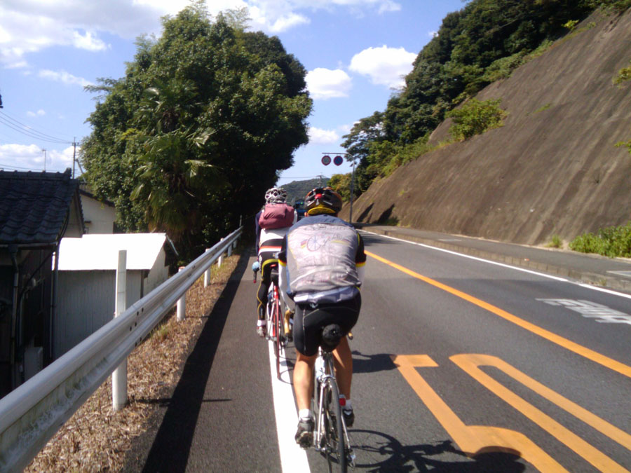 3人組は虹の松原を抜け鏡山方面へ、ヒルクライムしたかったけど(ウソ)そのままスルー。伊万里に入り、道の駅チックな所で休憩。よもぎ餅と柏もちを補給。村稀さんゴチになりました!この頃には、だいぶ暖かくなりウォーマーを脱ぎます。