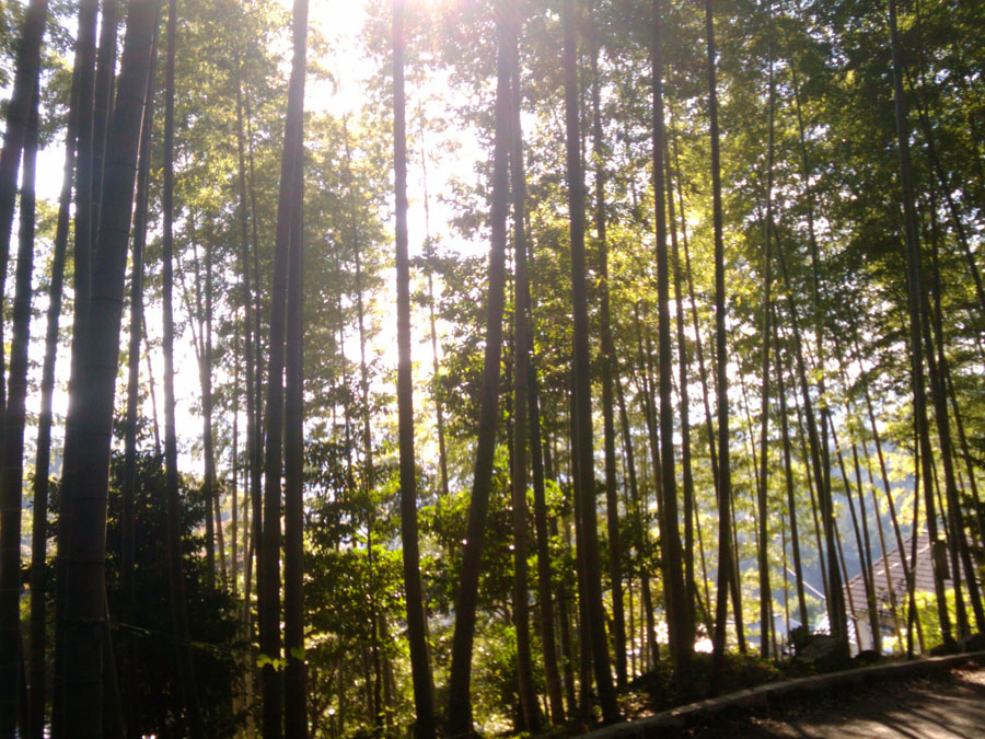 市民の森から那珂川方面へ、6月の秘境ツアーで訪れた竹林を通過し、9時前に中ノ島公園に到着、しばし休憩。今日のヒルクライムポイント九千部山(標高約800m)を目指します。