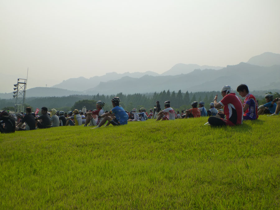 9時から50人ずつでスタート。 グレッグさんは第3グループ。村稀さんと私は第6グループです。 スタート後約150m下り、そこから阿蘇山を目指して700mの登り。気温は、まだそんなに高くありません。