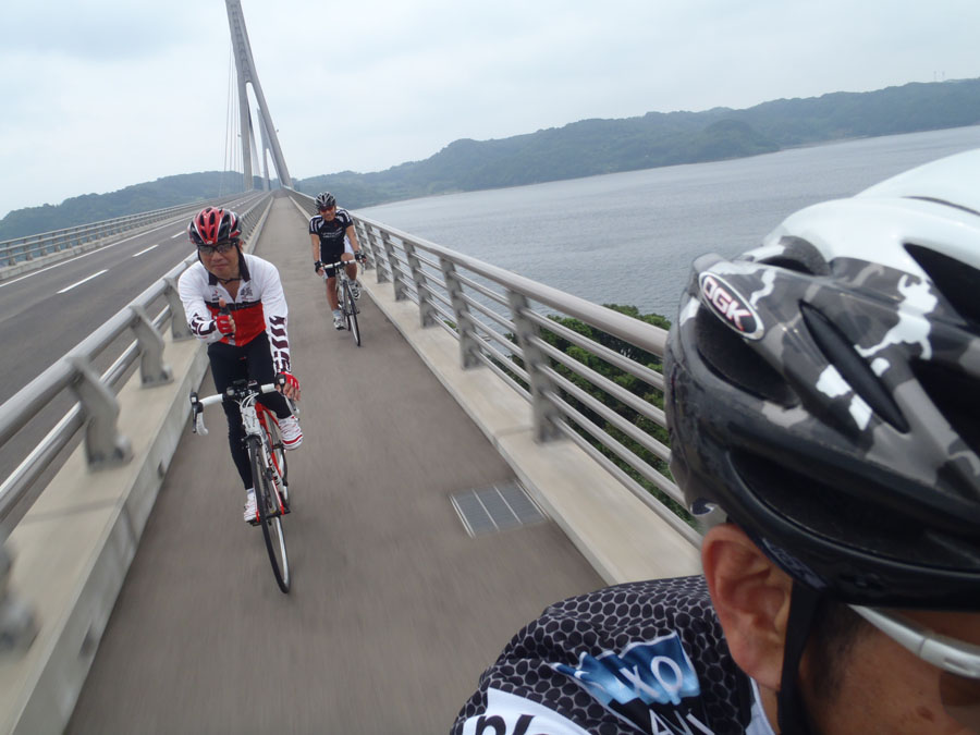 暑さのせいもあって、厳しい条件での走行になりましたが、得られる感動は大きいですね。突然視界が開け、目に飛び込む海と散りばめられた島々、そして鷹島大橋