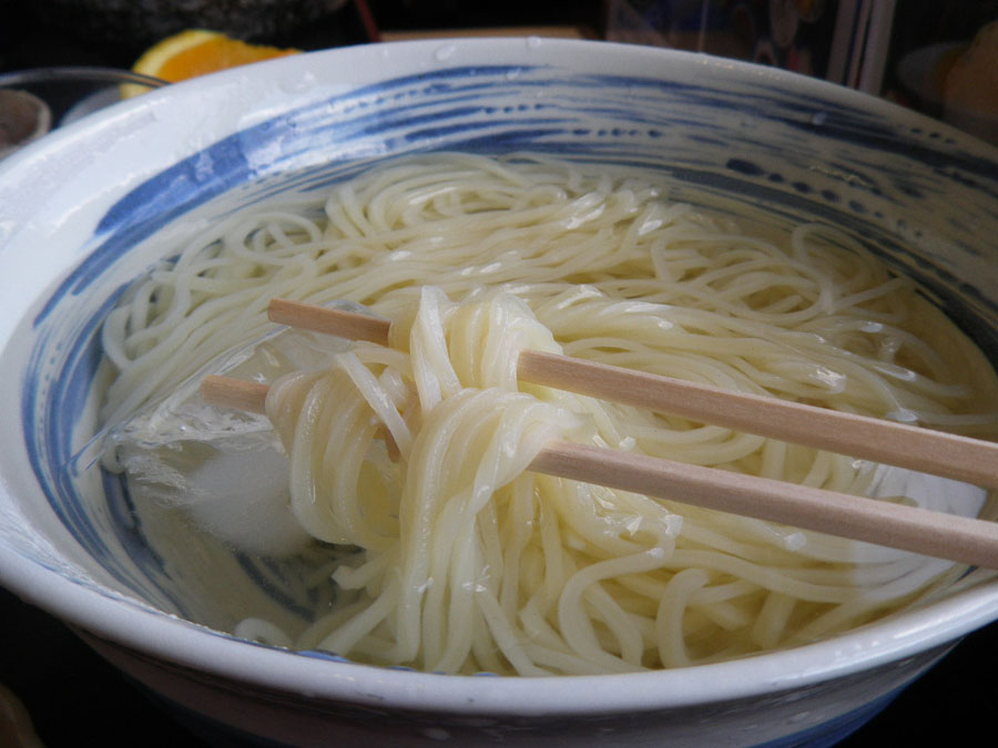 そんな心配はいらんことでした。村稀さんが、金山~蛤岳林道へ入る前の補給に選ばれた、ひの木屋うどん。ここの細うどんが旨かった。