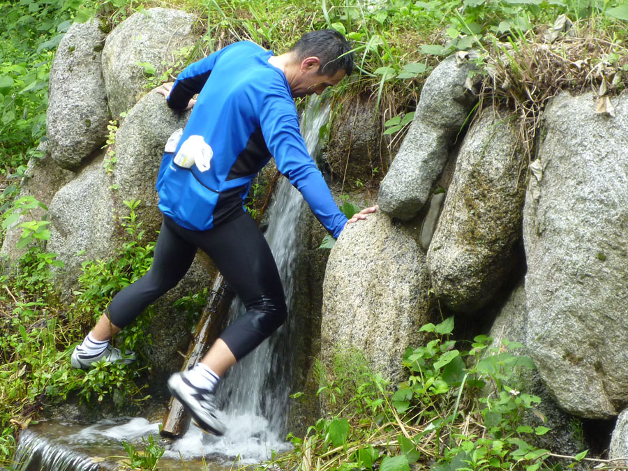 さて、上り始めますが当然つらい。つらくて、つらくて、しまいに麻痺します(あほ)。途中の山水がまさにオアシスです、何度となく助けられます。それに昨日梅雨が明けたのも手伝ってか、夏空が広がり、すごく空気が澄んでいて上からの眺めは最高に輝いておりました。