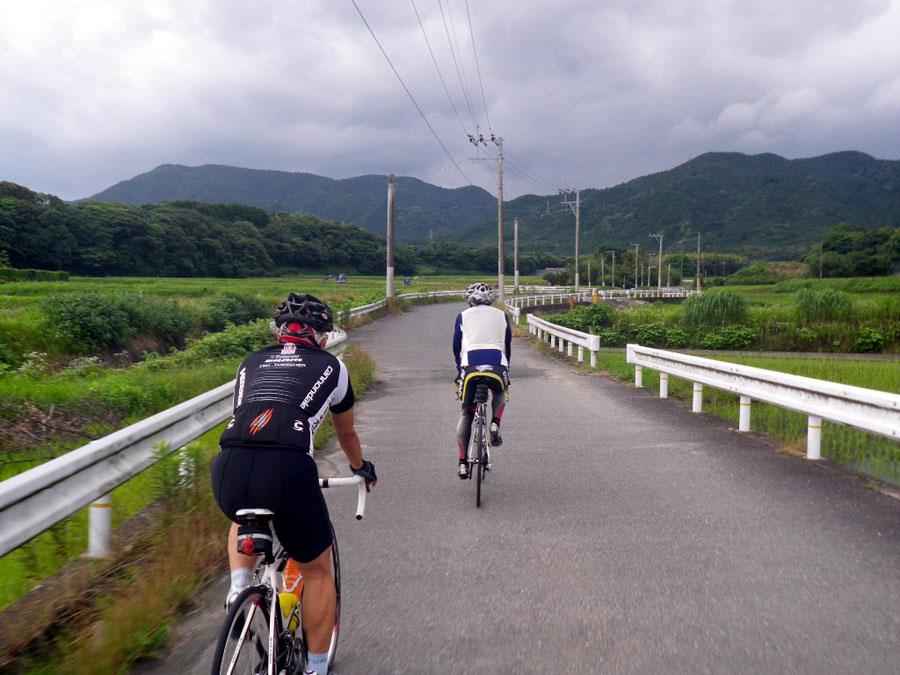 今日は父の日。降水確率50%予報のせい?集合したのは村稀さんとレポーターのスマイリー2名のみ(残念)。呼子ツアーは中止。私のリクエストで、前日村稀さんたちが走ったコースに決定!題して、激坂&◯◯探訪with雨ツアーです。