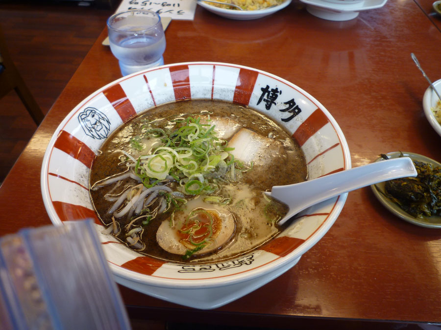 ここで早めの昼食です、博多ラーメン麺王。僕は、赤ラーメン(唐子味噌味の坦々麺風トンコツ味)。村稀さんはお薦めの黒ラーメン(焦がしニンニク入トンコツ)美味しく頂きました。