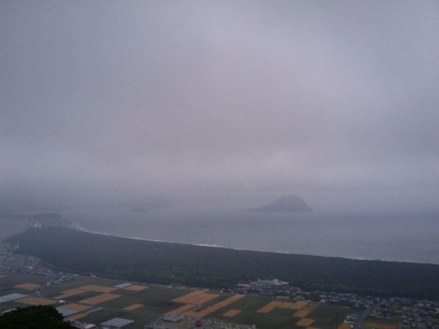 霧雨のような状態で、ブレーキが効きにくく、スピードに注意して走ります。深江で202号線に合流。虹の松原を経由して、鏡山登口に11時到着。