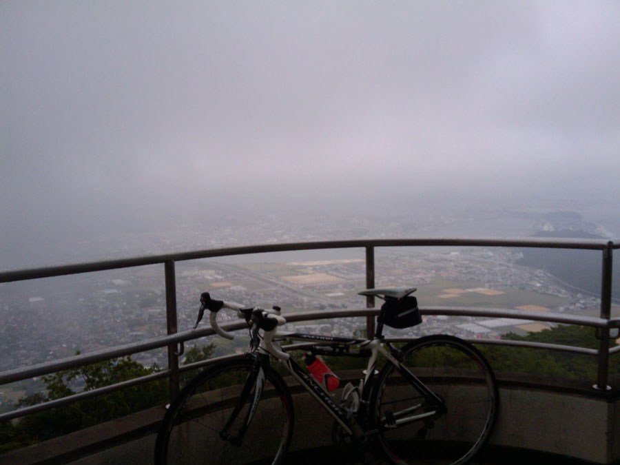 全部で16カーブ、約4㌔のコースです。アウターで踏んでいきます、時速15㌔を目安にしました・・。勾配はさほどなく、四王寺のほうがキツイと思います。程なく到着、17分。(微妙なタイムでしょうか?)村稀さんは16分ちょっと、でも不服そうです。(15分台をねらっていたそうです、さすが・・)