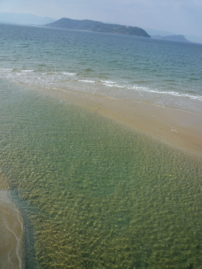 ラッキーだったのは志賀島橋の開通翌日だったこと。真新しい橋の下の海は限りなく透明に近いブルー!