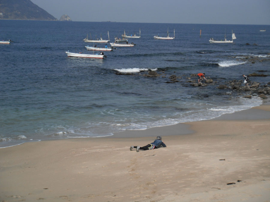 志賀島は撮影タイム。金印公園でパチリ。海岸でパチリ。しか〜〜し、アングルに凝る男の写真より、凝る男を撮った写真が素晴らしいという悲劇!!