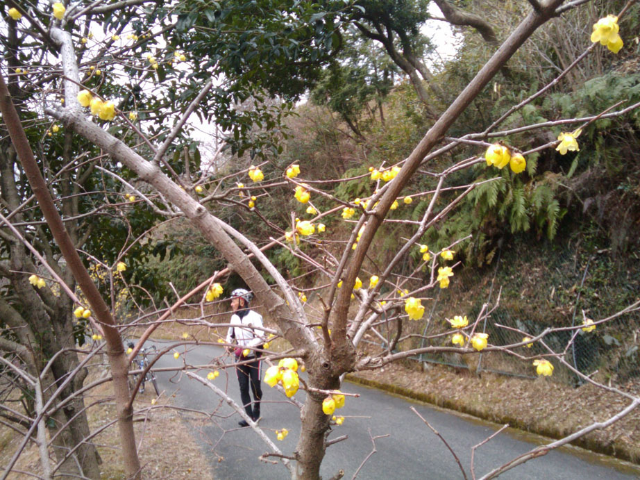 さぁ~、ここからは、車のほとんど通らない道をグイグイ進んで、帰りますよ~。時々訪れる直線道路では、平地最高速を目指し、各自タイムアターック!本日の最高記録、yamamenさん49.7㌔。我ら風流三人組、梅の咲いている所では写真撮影に興じながら、一気に周船寺あたりまで。