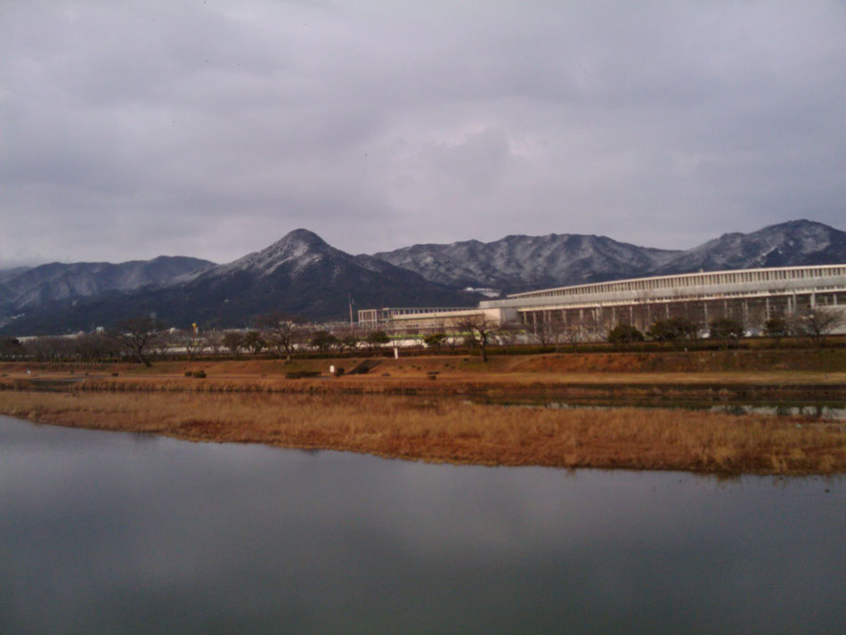 島廻橋から、福大方面へ。滑りやすい路面で、ブレーキも効きにくく、慎重に走ります。しかし、コースは昨日と同じで、なん