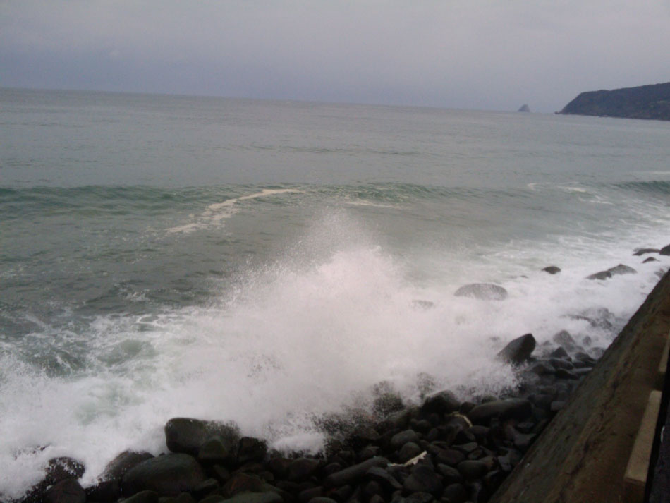 程なく二見ヶ浦到着。これは、なかなかいい波が迫ってきてますよ~。恒例の撮影タ~イム。岩に砕ける波しぶき、何かに取り憑かれたように、シャッターを切りまくります。村稀さんは、50枚以上撮影したのではないでしょうか(驚)~波フェチ3人組とでも呼びますか~?