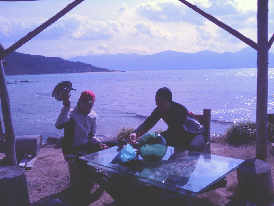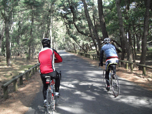 七隈から外環、西陵高校横を抜けて今宿に。海岸沿いの道をゆっくり流し、今津橋を渡り海岸線へ。そこからは、がんがんyamamenさんが引いていきます。もう、全然追いつかないんですけど・・(泣)