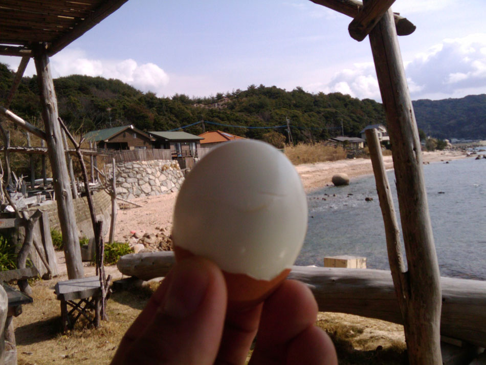 ゆっくり下りた後、ポールさんのお店に寄り道。4月の開店が待ち遠しいですね・・。芥屋からは、立石山ヒルクライム。そして、”又一の塩”へ。ここを訪れるのは初めてなので、とても楽しみにしていました。yamamenさんと私はゆで玉子、村稀さんはプリンを頂きました。玉子はほんのり塩味が加わり、身体にやさしい味でした。この頃にはすっかり暖かくなり、いい天気になりました。