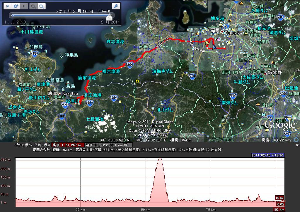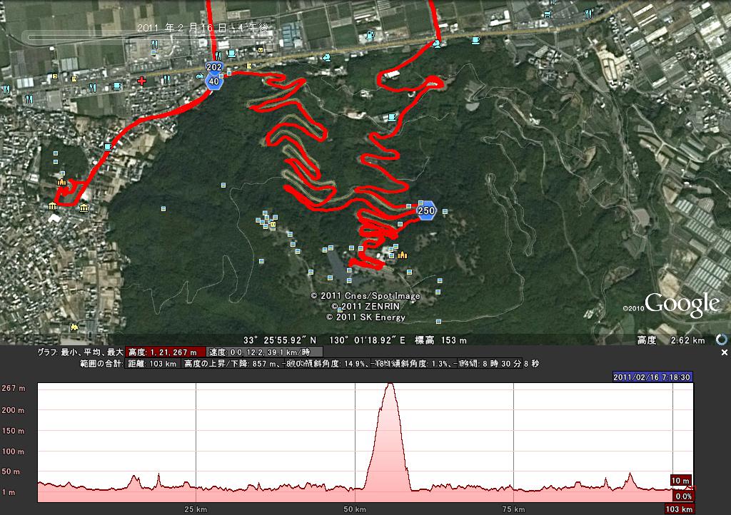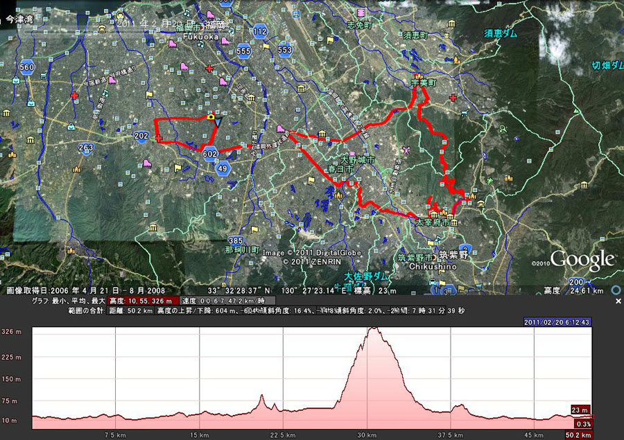 12時30分、島廻橋スタート。七隈から梅林経由で263号線へ。早良営業所から側道へ入り、車のプレッシャーもなくのんびり流します。途中、ヤマタカ醤油が右手に、お奨めの醤油屋さんとか。程なく車道に合流し大門を直進、早良高校が見えてきます。