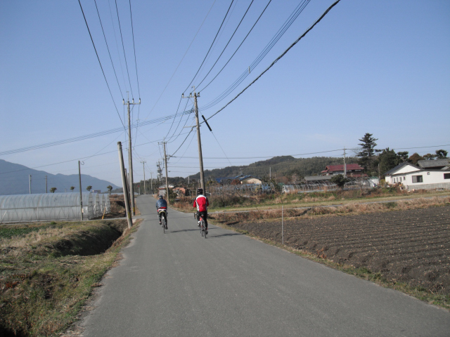 8時だよ、全員集合!本日の参加者は、今月のすでに800キロ以上走行の村稀さん、梅の花のように可憐でかわいい奥様がいらっしゃるグレッグおかさん、そして、最近体重がV字回復しつつあるyamamenの3名。 スクープ キジ目撃!