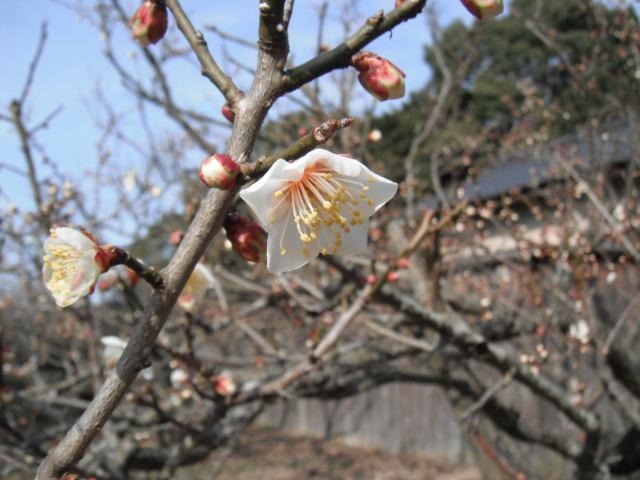 6000坪の敷地に、梅林があります。見頃はまだでしたが、かわいい花がちらほら咲いていました。僕の妻のようにカワイイ(照)