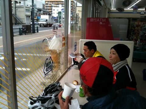 イートインのコンビニで補給です。これでコンビニ前で寒さに震えて立ち食いとかだったら、何かの修行ですか状態でしたね。イートインでよかった。補