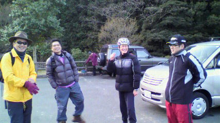 さて、平尾に村稀さん、ハナちゃん、そして私nafの3人が揃い、年始の挨拶を済ませ出発です。五号線を通り春日へ向かい、ほどなくスマイリーさんも合流。四王寺山を目指します。