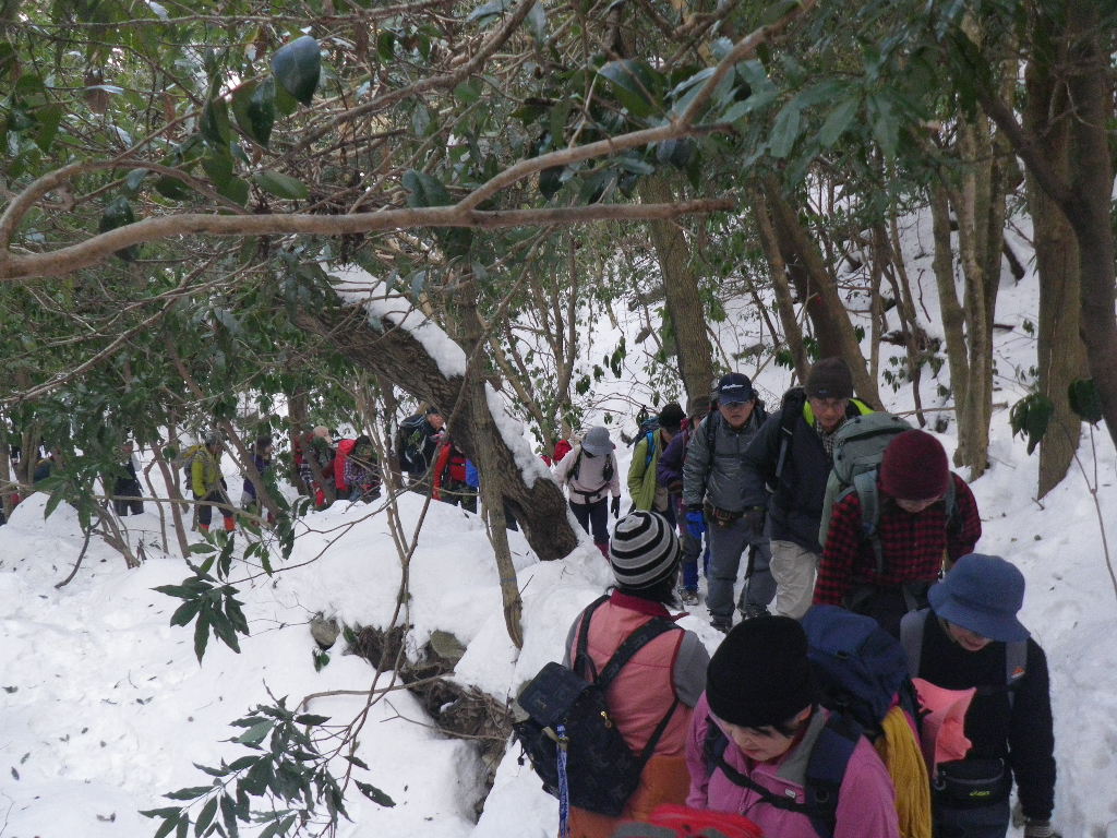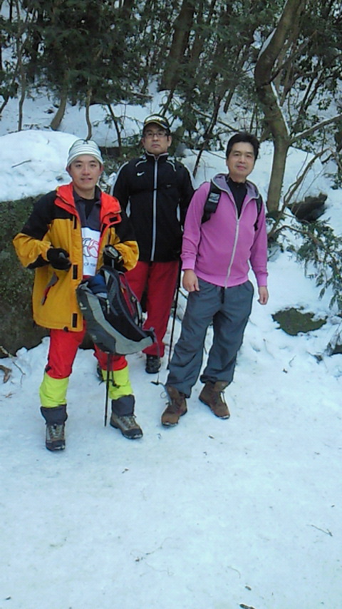 さて、いつの間にかスマイリーさんの背中は見えなくなりまして(汗)、後ろを振り返ると村稀さんとハナちゃんが淡々と登っています。よし今のうちに少しでもアドバンテージを!(^^; と、ほくそ笑んでいたらすぐにM上さんから撃墜されまして、おまけに雪は降ってくるわ寒いわでテンションだだ下がりです(^^;