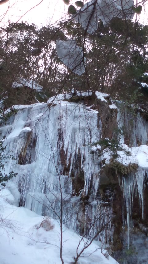 Yamamenさんの声に、歩を早めると目の前に凍った滝が!