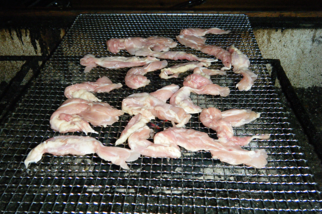 初めて食べた、せせり。とてもジューシーで美味しかったです。それから軟骨や味噌ダレの肉。ささ身の刺身、これはもうマグロのトロっぽい感じでビックリ。その他もろもろ大変美味しゅうございました。満腹ですっ!。