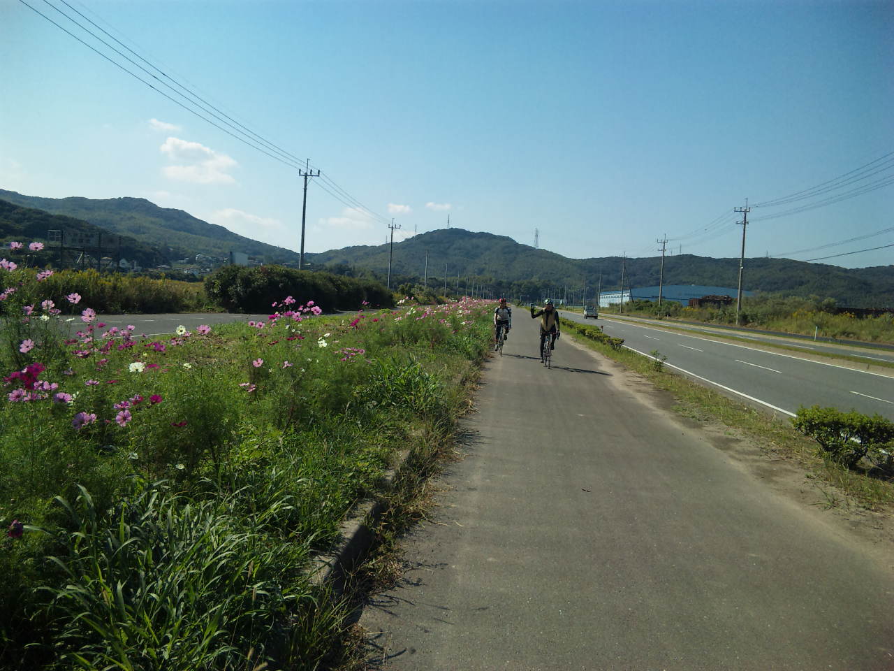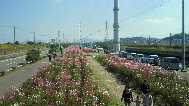 と、ここで、M上さんから、最初の予定にない若松のコスモス街道のリクエストです。