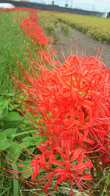 M上さんいわく今日が初めての道だそうです。道端には、彼岸花、秋を感じます。そこで携帯でカシャ!