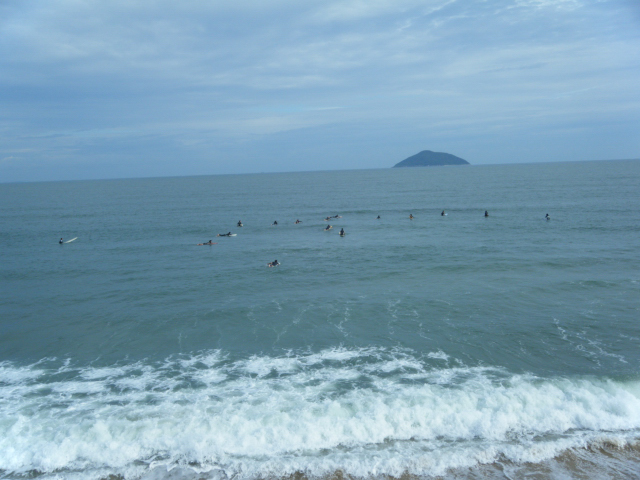 今日は海は荒れ風もすごい!こいでも先へ進まない!